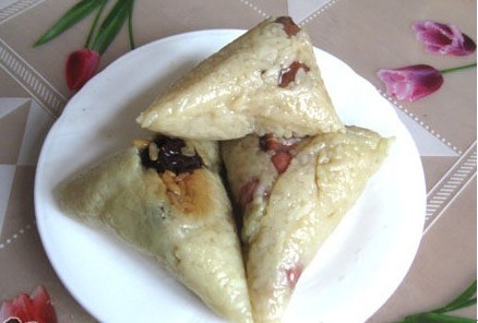 做法:將糯米泡一夜,然后把花生米、豇豆泡6小時以上,五花肉切塊加醬油、姜、料酒、糖和鹽漿一夜。把粽葉泡軟,取一片粽 葉折出一個三角,放一勺米,再放豆、花生米、肉和棗,最后再放一勺米。用手壓實米,把粽葉從上往下折疊,疊成三角形,用 棉線綁結實。在高壓鍋放進沒過粽子的水,上面壓一個盛水的盆,蓋好鍋蓋,扣限壓閥燒開一個半小時即可。