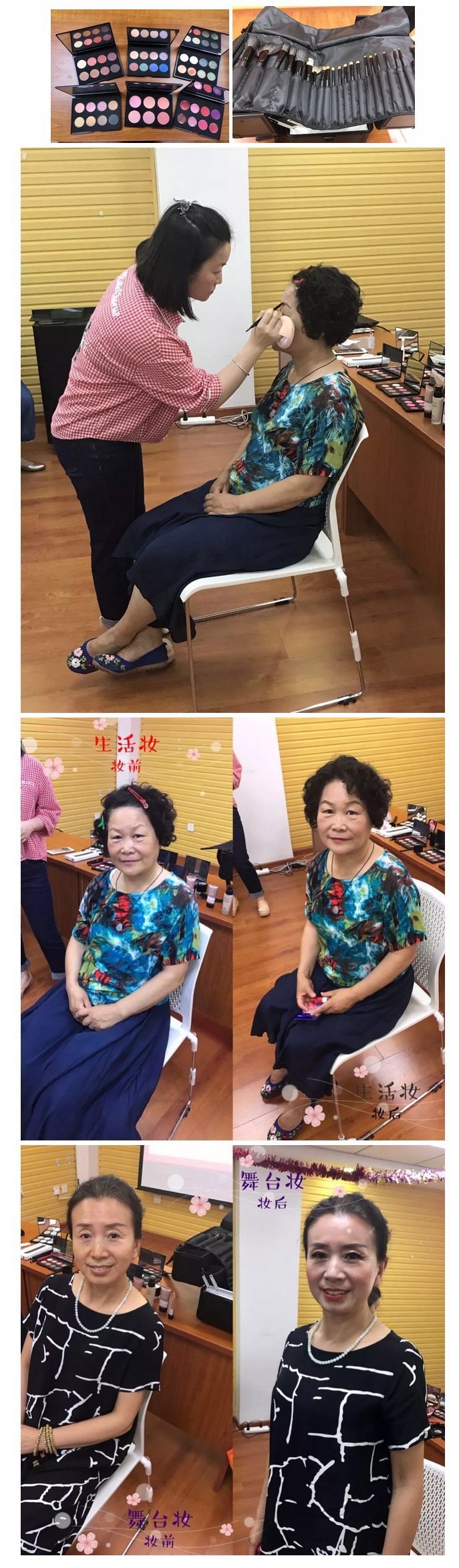 同時阿姨們聽說我們增加了豐富的彩妝體驗項目后都在踴躍的報名。阿姨們和化妝師在討論著自己的眉形,詢問適合什么樣的眉筆以及眉毛的畫法,表示回去之后都會積極的練習(xí)。